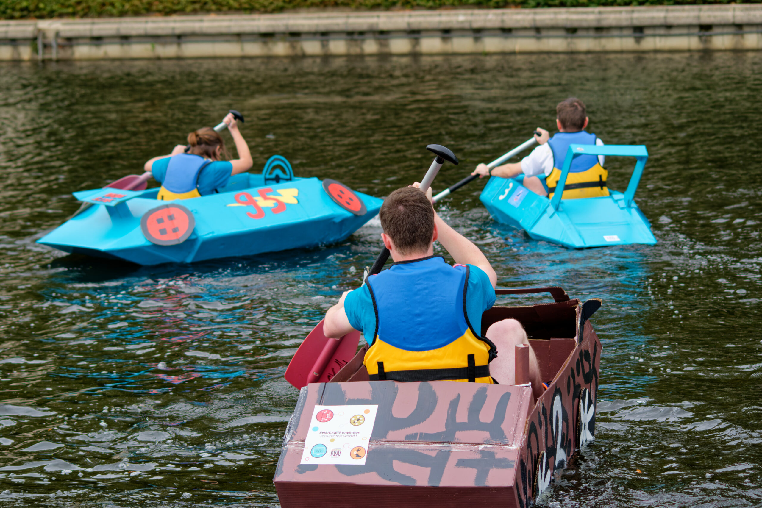 Retour en images sur la régate de bateaux en carton ENSICAEN ! La compétition a rassemblé neuf équipes d’apprenties et d’apprentis de 1re année, composées de 4 à 5 membres, issus des spécialités informatique, matériaux-chimie, génie physique et systèmes embarqués.