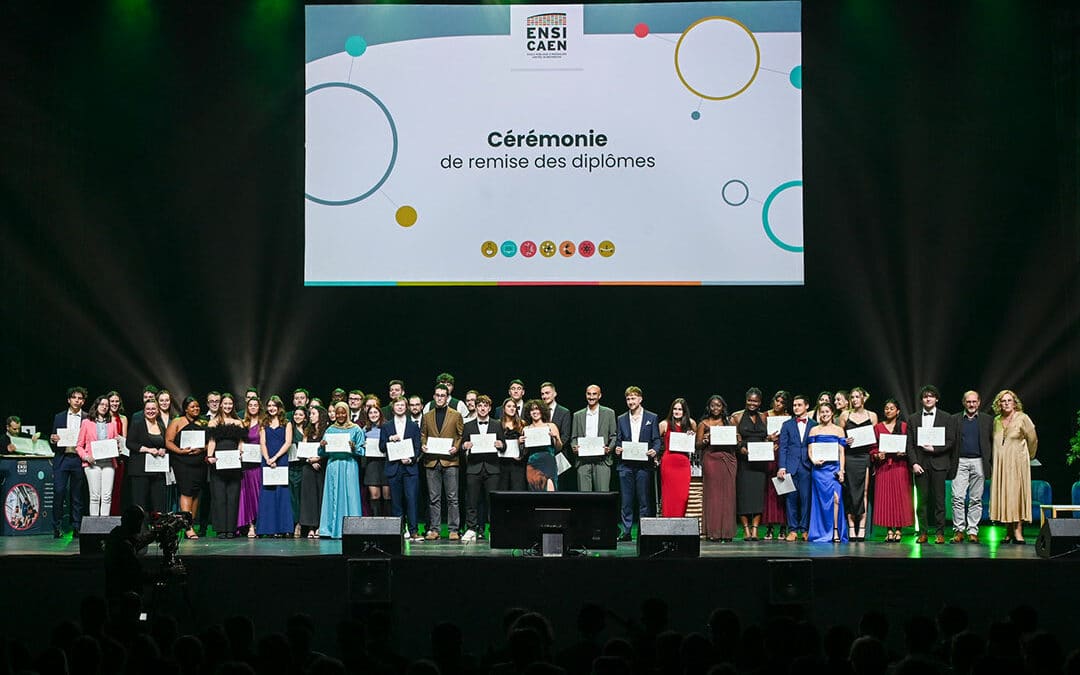 À la fois solennelle et festive, la cérémonie met à l’honneur la réussite des élèves et l’investissement des membres de la vie associative en charge de l’animation de la vie étudiante. Cette édition 2025 représente également l’occasion de célébrer la diplomation des premiers élèves du master ingénierie nucléaire, une nouvelle formation co-accréditée entre l’ENSICAEN et l’INSA Rouen Normandie. Dans un contexte de forte croissance du secteur du nucléaire, ces jeunes diplômés ont développé une expertise dans les domaines étroitement associés à l’exploitation des centrales (physique du cœur, thermohydraulique, énergétique, sûreté) et au cycle du combustible nucléaire.