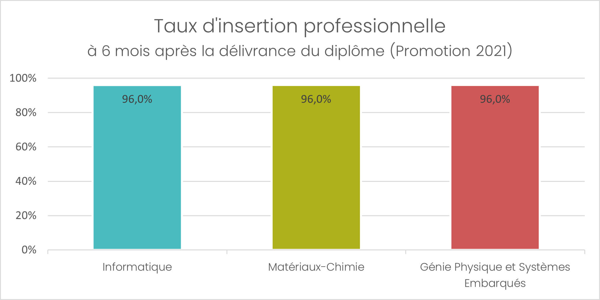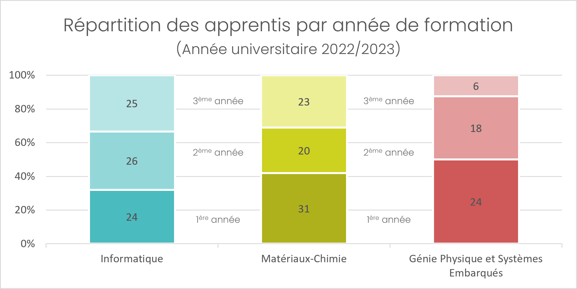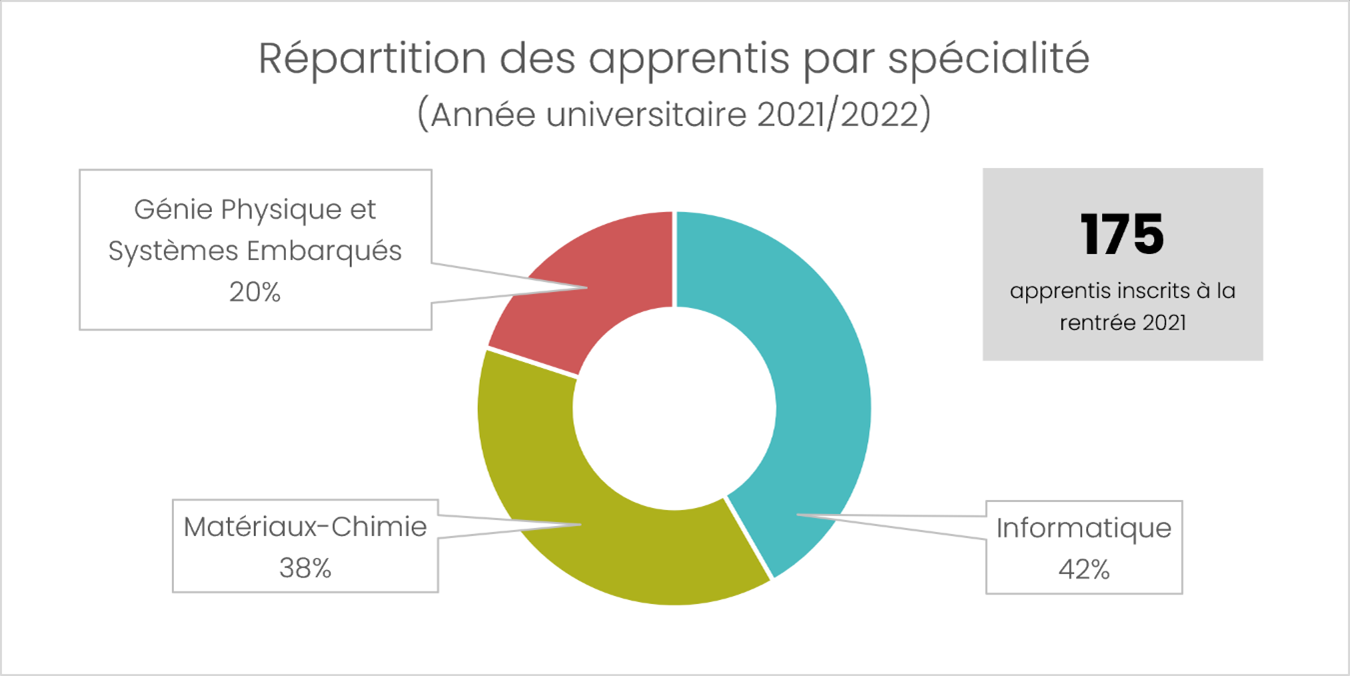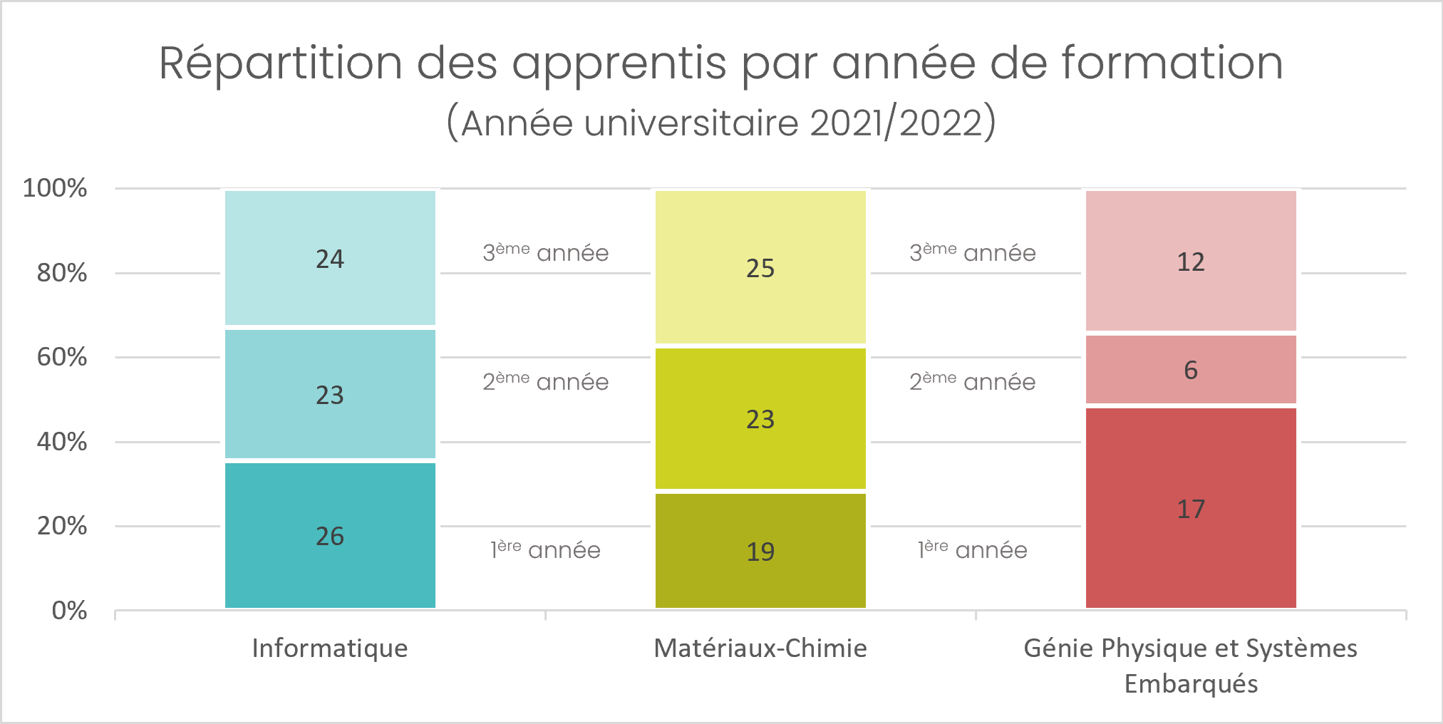 Ouvert en septembre 2017, le parcours par apprentissage en « Génie physique et systèmes embarqués » est le plus récent. Le taux de remplissage est donc inférieur aux autres spécialités.