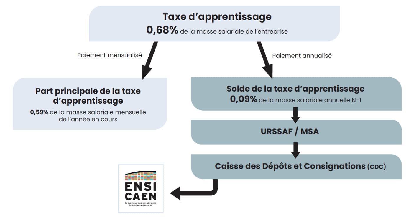 La taxe d’apprentissage est le seul impôt pour lequel vous pouvez choisir le bénéficiaire ! L’ENSICAEN est éligible à percevoir le solde de la taxe d’apprentissage.