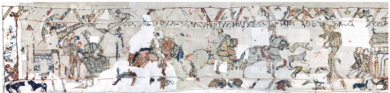 « Représentation numérique officielle de la Tapisserie de Bayeux – XIe siècle. Crédits : Ville de Bayeux, DRAC Normandie, Université de Caen Normandie, CNRS, Ensicaen, Clichés : 2017 – La Fabrique de patrimoines en Normandie »