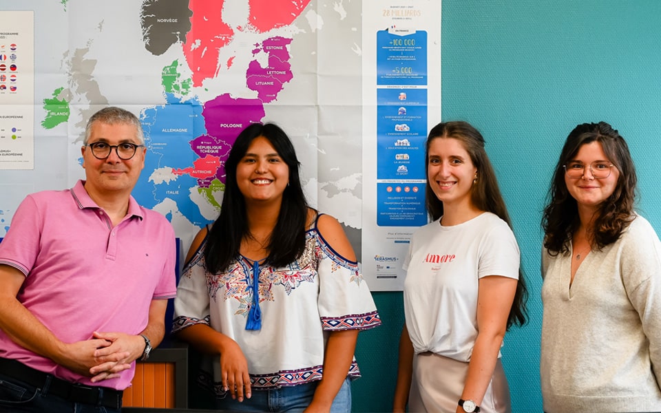 Photo de l’équipe de la Direction des relations internationales : Jean-Michel Rueff, Monica Herrera, Marie Travert, Pauline Morceau et Lisa Juste (absente)