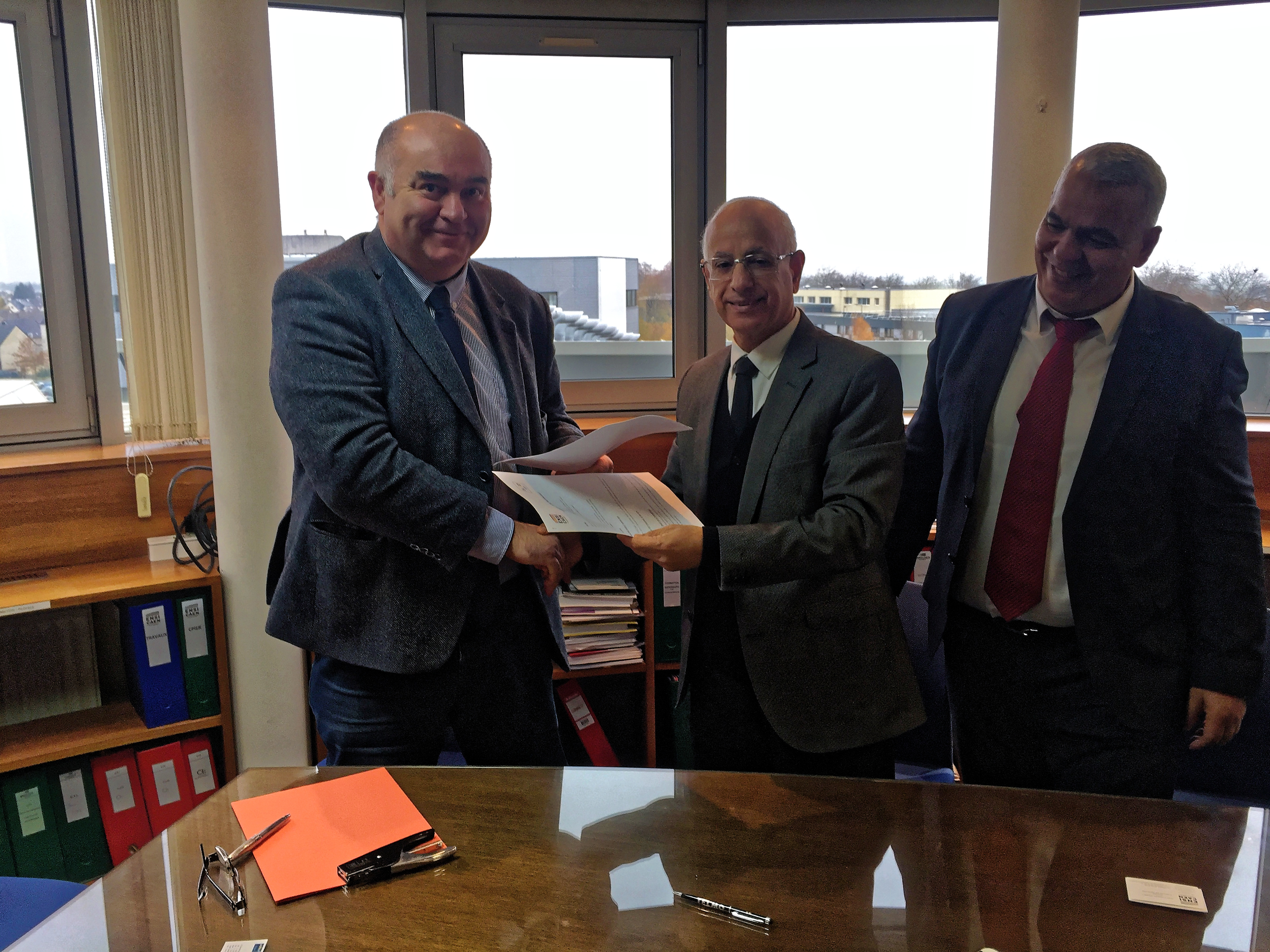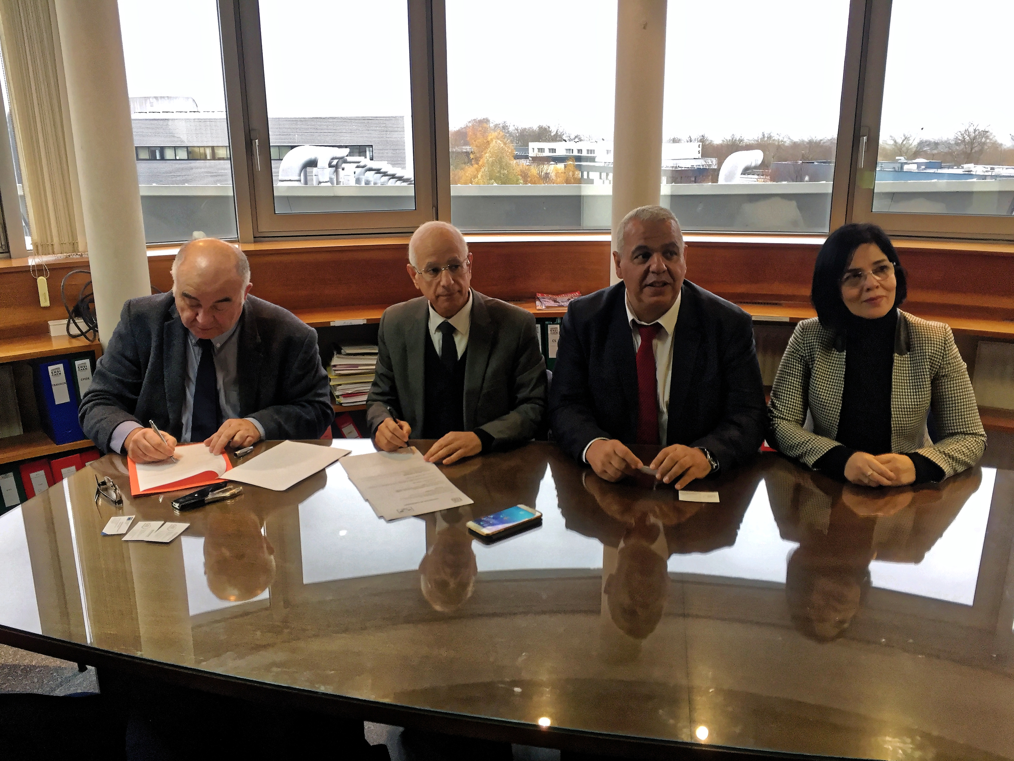 M. J-F. Hamet (Directeur ENSICAEN), M. Redouane KOUIDER AISSA (Directeur Général de l’Institut Algérien des Hautes Etudes Financières), M. Majid MESSAOUIDENE (Directeur Général du GIE Monétique d’Algérie) et Mme Benchabla ASSIA (Chef de division du GIE Monétique d’Algérie).