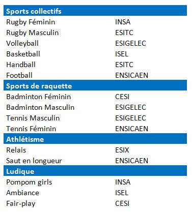 Chaque année depuis 2002 a lieu le Tournoi des Écoles d’Ingénieurs de Normandie (TEIN), le plus grand tournoi sportif étudiant de la région. Cet événement a pour objectif d’entretenir l’esprit d’équipe des étudiants qui se livrent une compétition acharnée pour remporter les 14 médailles à la clé ! Si le défi sportif a animé les 1052 élèves-ingénieurs présents à cette nouvelle édition, le fair-play et l’ambiance festive étaient également au rendez-vous.