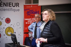 Diplômé de l’ENSICAEN, le colonel Franck Marescal, directeur de l’IRCGN a présenté les missions de l’institut, les activités et les personnels officiers (ainsi que les voies de recrutement) devant les étudiants de dernière année de l’ENSICAEN. Le major Nicolas Lemonnier, chef du centre d’information et de recrutement [CIR] de Caen est également intervenu pour présenter les missions et les voies de recrutement de la gendarmerie.