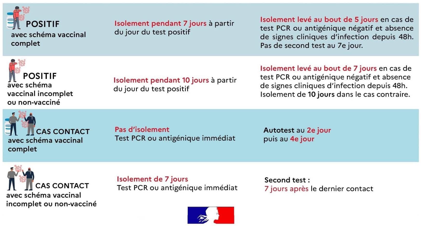 Si vous êtes positif au COVID suite à un test (autotest, RT-PCR ou TAG), la durée de l’isolement dépend de votre statut vaccinal :