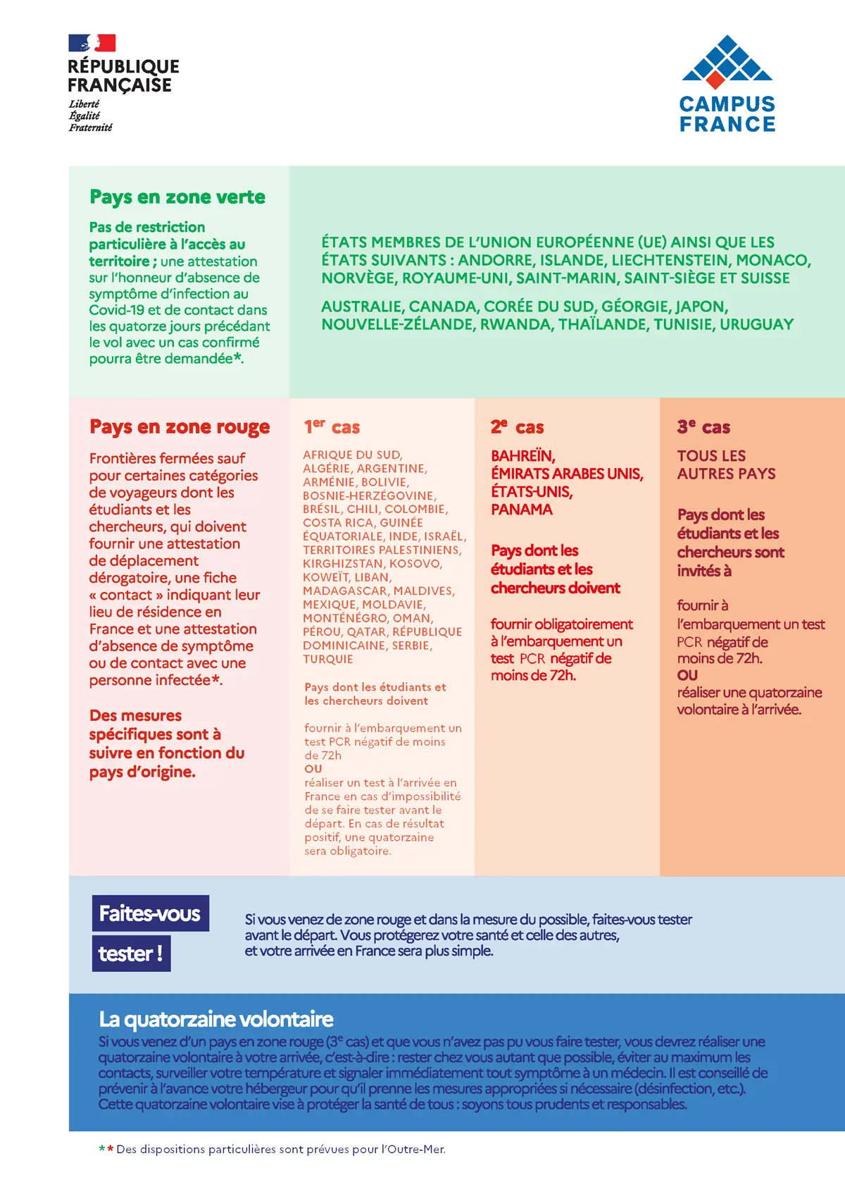 Selon le pays d’origine, les procédures qui s’appliquent son différentes. Le document ci-dessous indique pour chaque pays la zone dont vous relevez au 15 août.