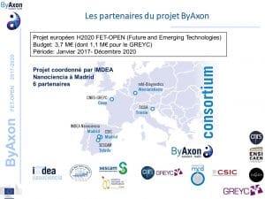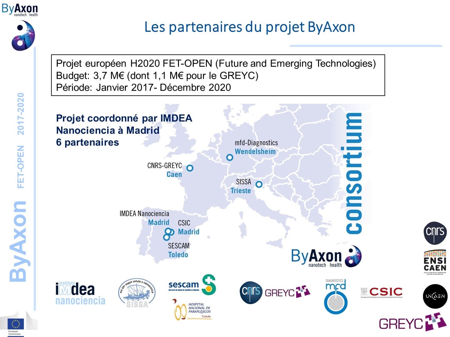 Le projet ByAxon est un projet multidisciplinaire qui allie Nanotechnologies et Sciences de la santé. Partenaire du projet, le laboratoire GREYC a accueilli la réunion des équipes les 25 et 26 janvier dernier dans les locaux de l’ENSICAEN.