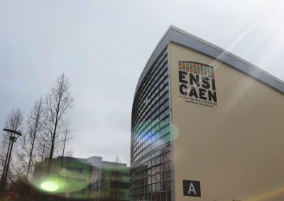 La ENSICAEN está ubicada en el Campus 2 ‘Côte de Nacre’, en el norte de Caen, entre el centro de la ciudad y el mar, en el corazón del centro científico de Caen.