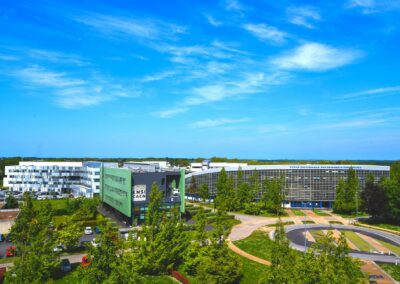 40 000 m² de edificios – 2 sitios geográficos – 10 000 m² dedicados a la enseñanza – 25 000 m² a la investigación